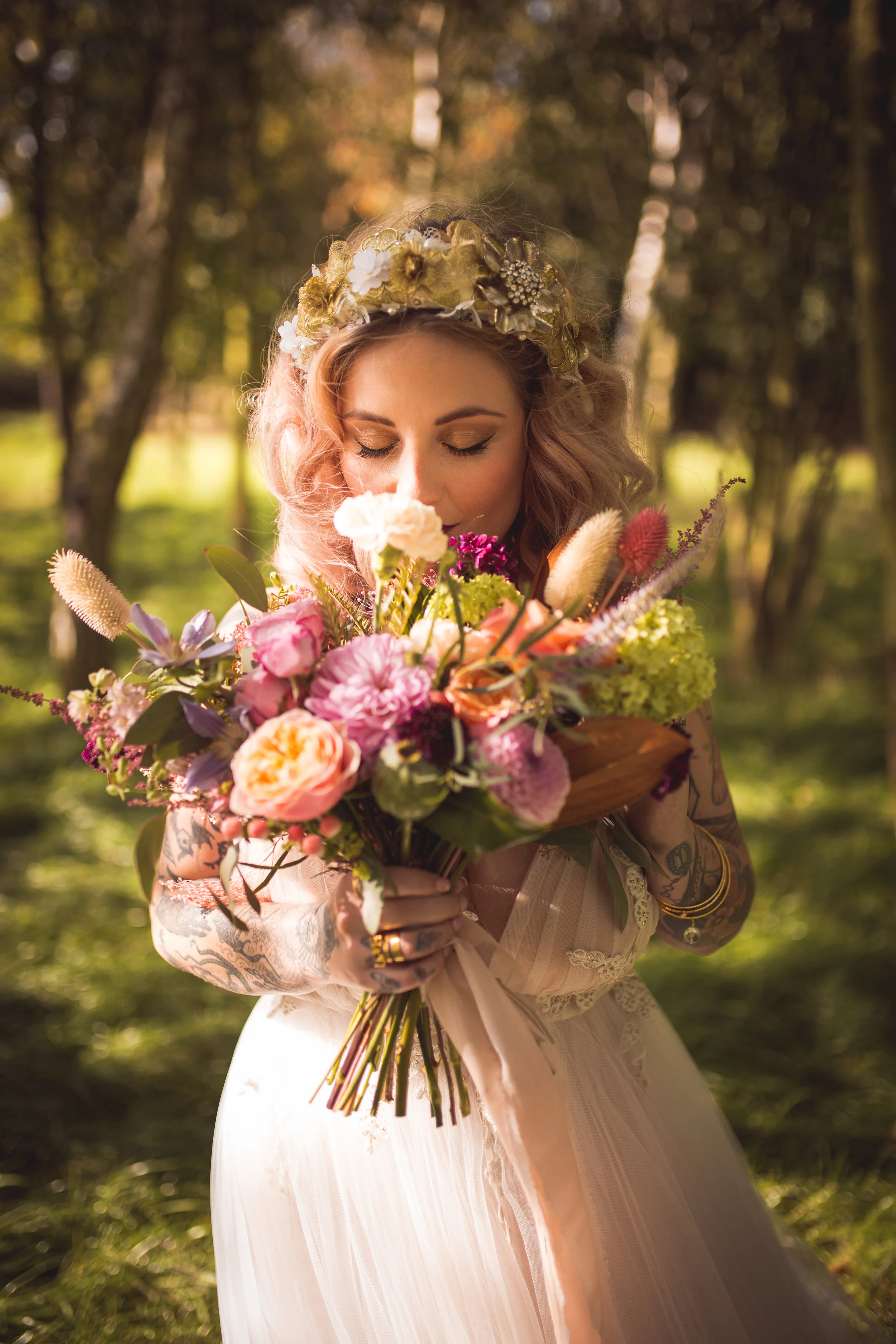 The unique setting was Nottingham’s newest tipi venue Overgrown Acres, which is a beautiful venue set in seven acres of lush meadow and woodland. The perfect backdrop for the wild nature of the photoshoot.